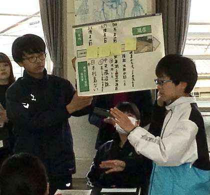 班での意見を全体に広め共有化をしている場面です。