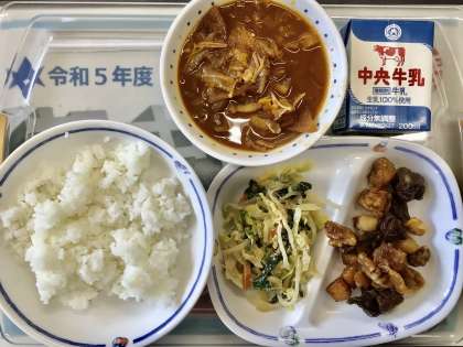 3/15(金)今日の給食 公開日 2024/03/15 更新日 2024/03/15 校長室から 今日の給食は、食べまるのおすすめです。 ⭐️野菜の練り胡麻和え ⭐️レバーとじゃがいもの甘辛煮 これ美味しいですよね。 ⭐️キムチ入り味噌汁 気づきましたか?キムチに ⭐️ご飯に味噌汁でした。