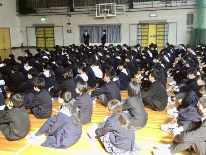 3/18(月)1年生先輩に学ぶ会1 公開日 2024/03/18 更新日 2024/03/18 学校の特色ある活動 1年生は6時間目体育館で先輩に学ぶ会を行いました。 大府市に店を構えている 「鈴木バイオリン」という会社のバイオリン制作の方に来ていただきました。 1年 特色ある活動
