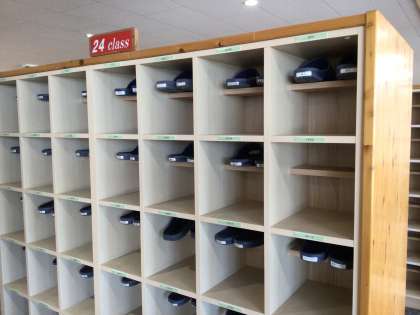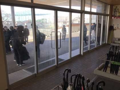 午前7時40分ごろです。生徒会が動き始めました。生徒たちが外で扉が開くのを待っています。