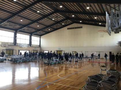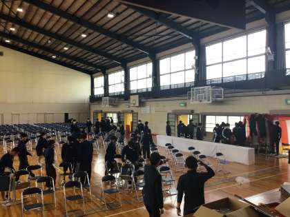 始業式、入学式前日の今日、新3年生の皆さんが準備に来てくれました。体育館の清掃、椅子等の準備や、新入生のための活動を一生懸命行ってくれました。