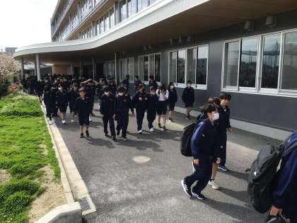 徒歩通学者は下校です。自転車通学者は、今から自転車安全講習会を行います。
