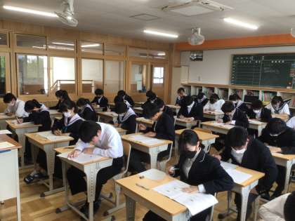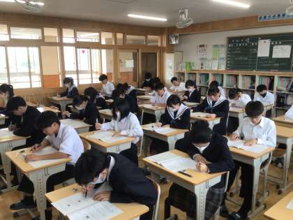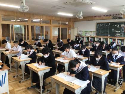 2時間目は数学です。難しい問題にも集中して取り組んでいます。上から36・37・38学級です。