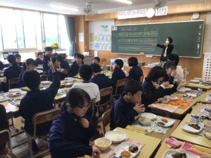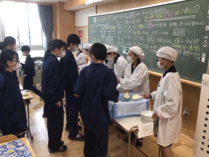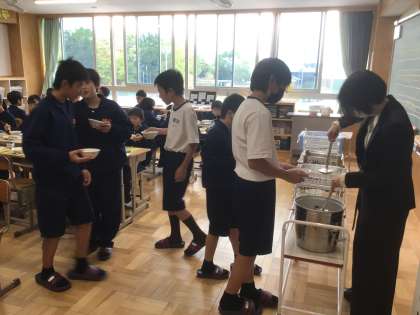 4/18(木)給食の様子 公開日 2024/04/18 更新日 2024/04/18 輝く朝中生! 11学級の配膳の様子です。みんなで協力しています。(上) 14学級の会食の様子です。進んでおかわりをしています。(中・下) 1年