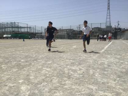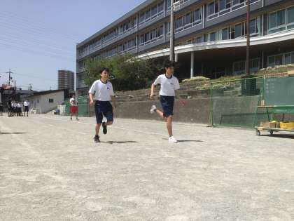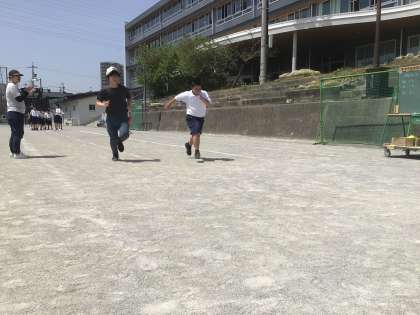 1・2・3・4・5・6学級の体育です。みんなで応援しながら、50m走を行っています。