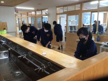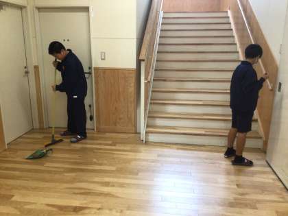 個別懇談会中は清掃はありませんが、給食後にボランティアで階段を掃除する18学級の生徒です。(上)