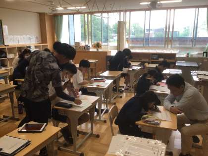 1・2・3・4・5・6学級の国語です。みんな集中して学習しています。
