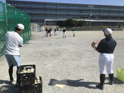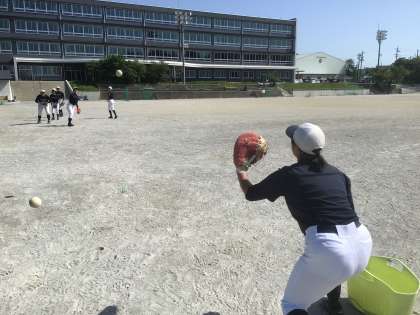 ソフトボール部です。キャッチの練習をしています。