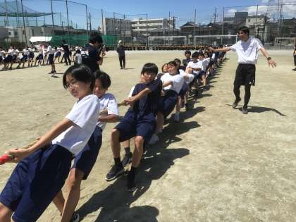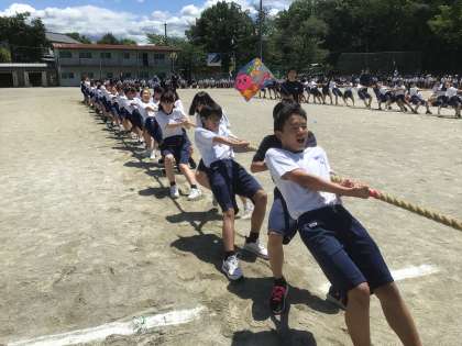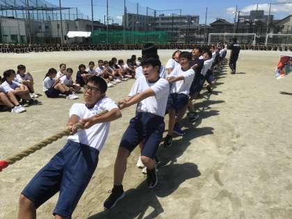 2年生の綱引きです。綱引きはトーナメント1回戦の本番です。