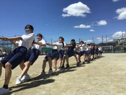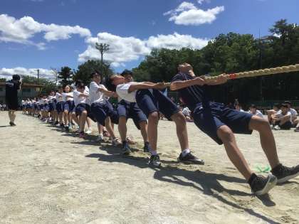 3年生の綱引きです。綱引きはトーナメント1回戦の本番です。