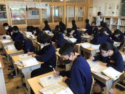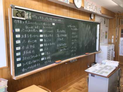 23学級の家庭科です。学習課題は、「中学生の発達と必要な栄養の特徴を理解しよう」です。意見がたくさん出ています。