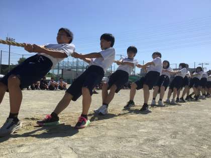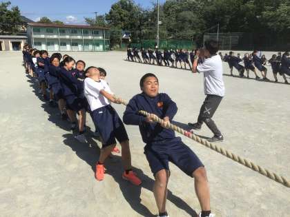 2年生です。本番の順位につながる綱引き予選です。全力勝負です。