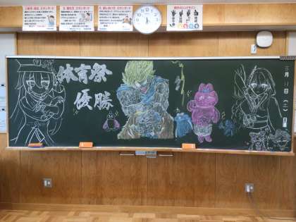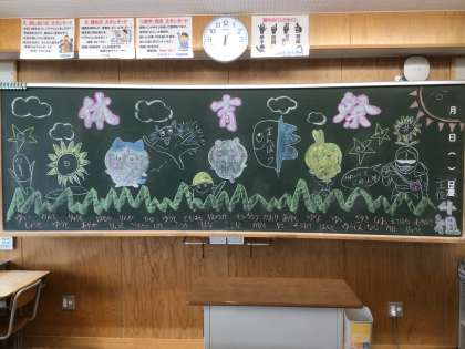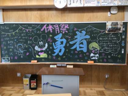 前日に生徒が仕上げた黒板装飾です。24・25・26学級です。