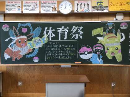 前日に生徒が仕上げた黒板装飾です。31・32・33学級です。