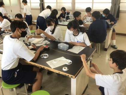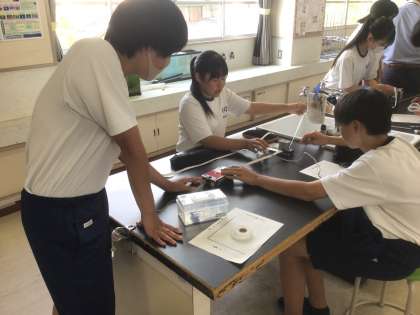 34学級の理科です。学習課題は、「運動の向きに力を受け続ける運動を調べよう」です。
