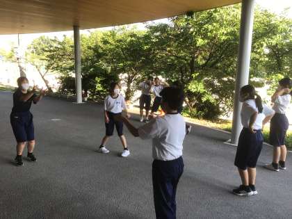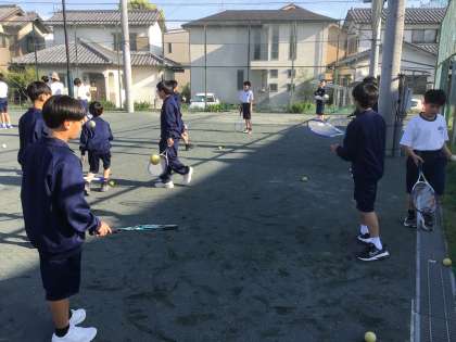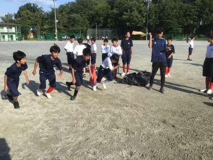 1年生が体験入部をしています。サッカー、女子ソフトテニス、男子ソフトテニス部です。