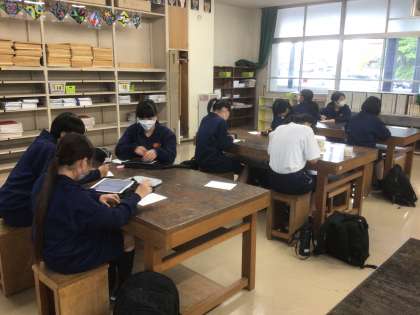 1年生が体験入部をしています。上から放送部、吹奏楽部、美術部です。
