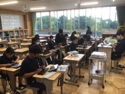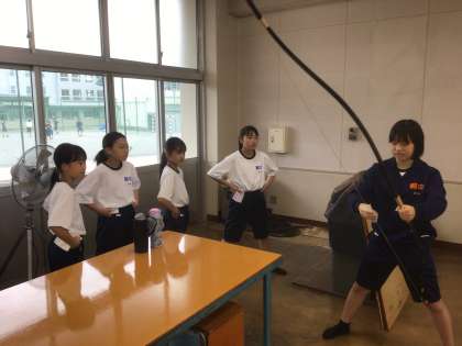 1年生が体験入部をしています。上から、弓道部、パソコン部です。