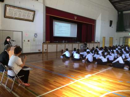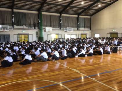 現在、体育館で修学旅行説明会を実施しています。この後、進路学習会となります。