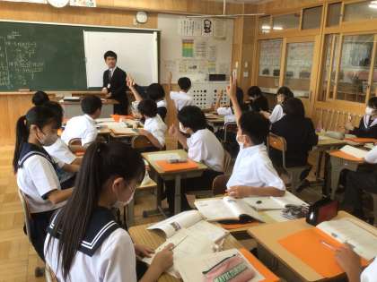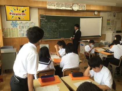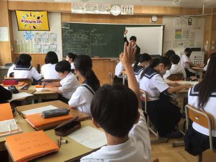 14学級の数学です。計算問題に取り組んでいます。仲間の発言に対する反応が良いです。