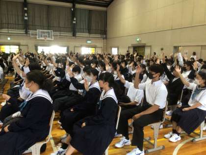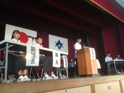 生徒会執行部や各委員会の提案を受け、質疑応答と採決を行います。