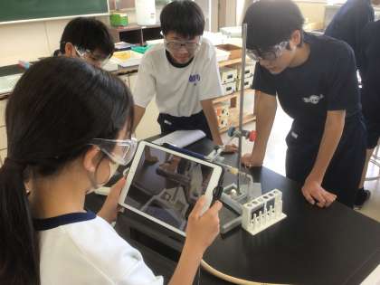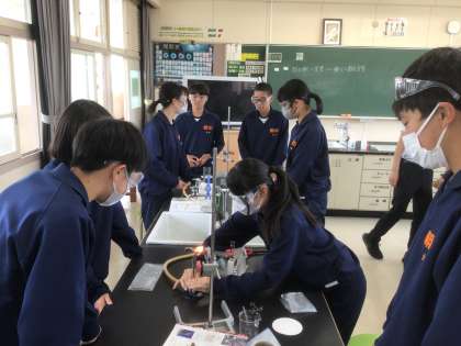 22学級の理科です。酸化銅と炭素を加熱し、変化を調べています。