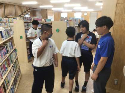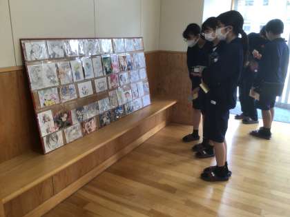 廊下にある美術部の絵を見たり、図書館で過ごしたりしています。