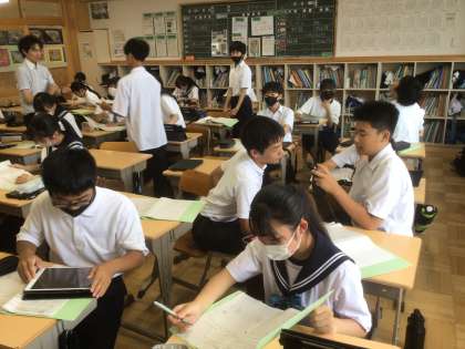 5/27(月)職場体験に向けて1 公開日 2024/05/27 更新日 2024/05/27 輝く朝中生! 訪問先ごとのグループに分かれ、事業所への行き方を計画しています。(写真は、子どもに関連する事業所へ訪問予定の生徒です) 2年