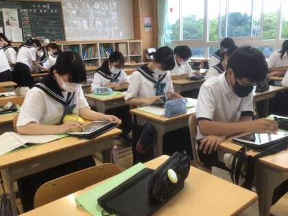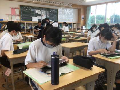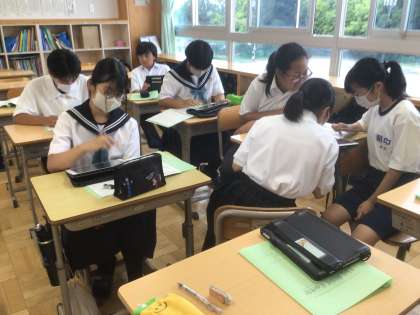 訪問先ごとのグループに分かれ、事業所への行き方を計画しています。(写真は、市の施設へ訪問予定の生徒です)