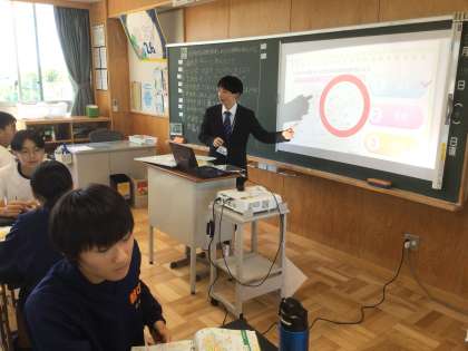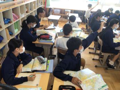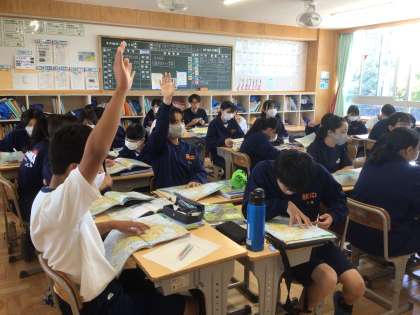 26学級の社会です。九州地方について学んでいます。(教育実習生が授業をしています)