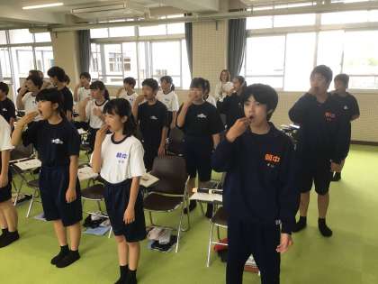 15学級の音楽です。発声練習をしています。(教育実習生が授業をしています)