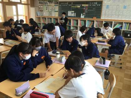 35学級の社会です。第二次世界大戦中の特攻隊の方が記した手紙を読んでいます。