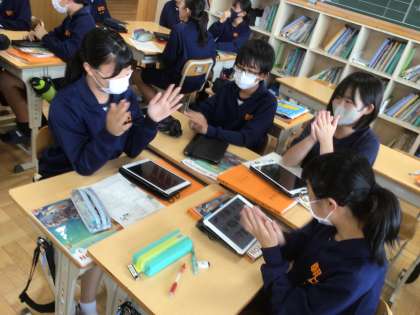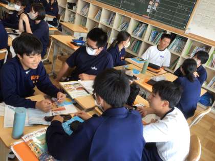 5/31(金)授業の様子4 公開日 2024/05/31 更新日 2024/05/31 輝く朝中生! 21学級の英語です。They are talking about “If you can use Himitsudogu, what do you want to use?” in English. 2年