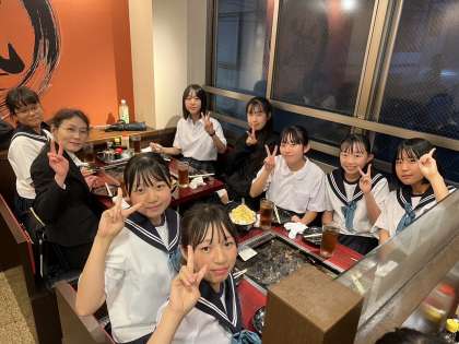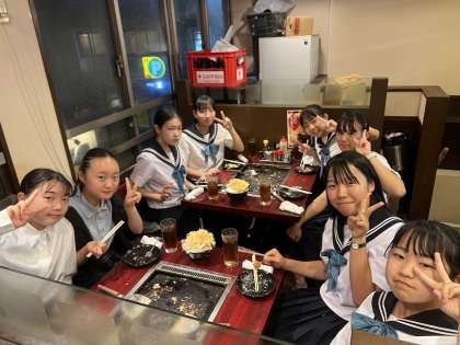 7組です。夕食でもんじゃ焼きを食べています。