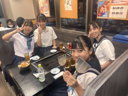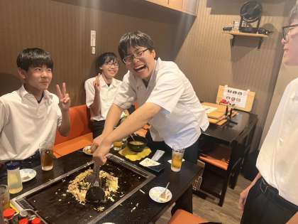 3組です。夕食でもんじゃ焼きを食べています。
