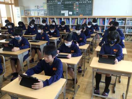 16学級です。1年生はスカイメニューの発表ノートの新しい使い方を学んでいます。