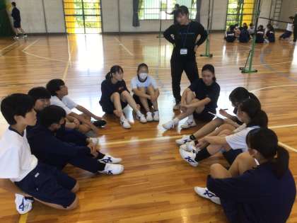 23・24学級の体育です。ソフトバレーボールに取り組んでいます。(教育実習生の研究授業です)