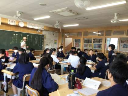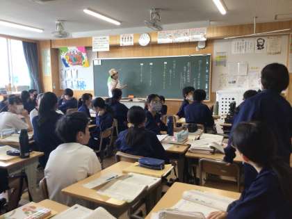23学級、国語の授業の様子です。クマゼミの増加の原因を探るという題材です。