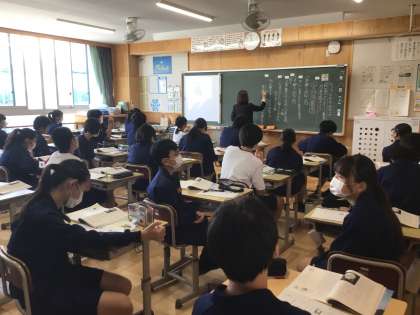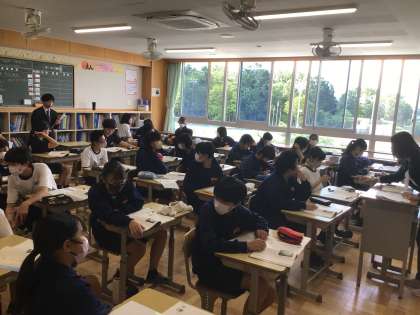15学級、国語の授業です。実習生が授業をしています。