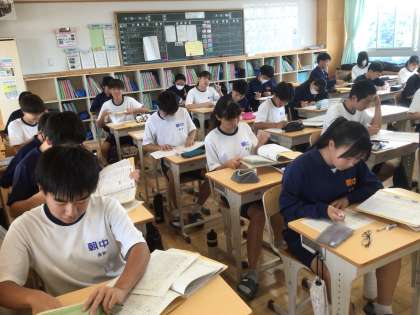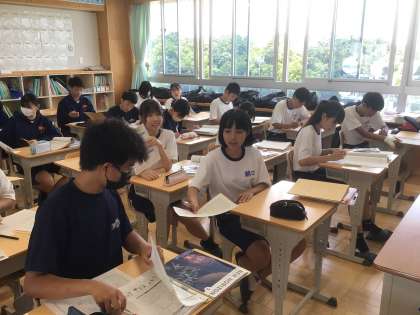 36学級の英語です。単語テストを行い、ペアで確認しています。