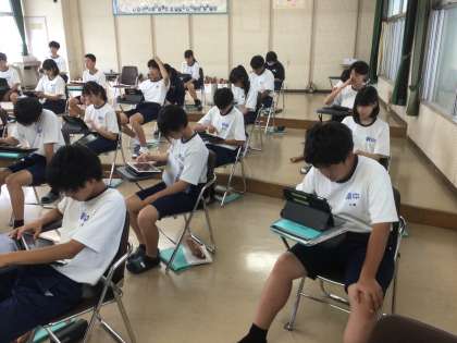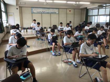 6/13(木)授業の様子3 公開日 2024/06/13 更新日 2024/06/13 輝く朝中生! 38学級の音楽です。「ブルタバ(モルダウ)」を聴き、学習用タブレットに鑑賞文を入力しています。 3年