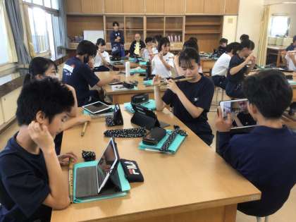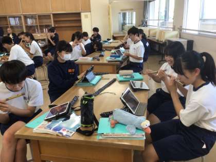 6/14(金)篠笛を学ぶ会6 公開日 2024/06/14 更新日 2024/06/14 輝く朝中生! 2年生は、音楽の授業で、挙母祭りの講師の方を招いて、篠笛を学ぶ会を行っています。写真は24学級です。 2年