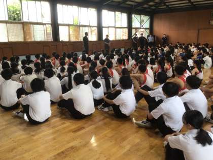 先生から3年生へエールを送り、壮行会へと送り出しました。