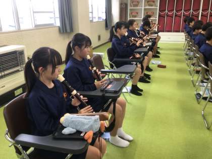 11学級の音楽です。アルトリコーダーで、「喜びの歌」を演奏しています。