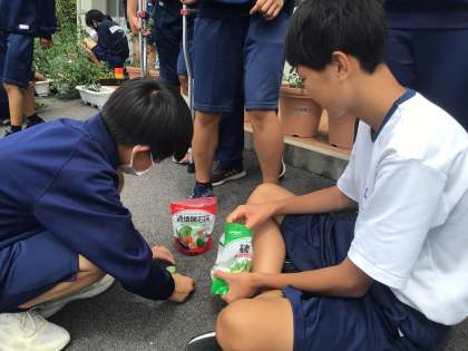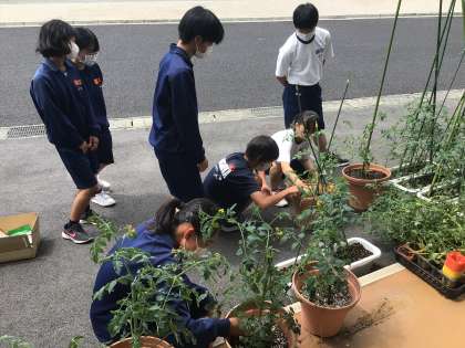 28学級の技術です。トマトを甘くするための肥料を考えています。