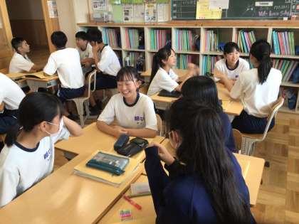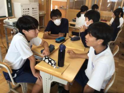 6/24(月)授業の様子6 公開日 2024/06/24 更新日 2024/06/24 輝く朝中生! 37学級の英語です。They are talking about “Do we need club activities in J.H.S?” 3年