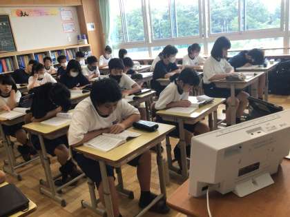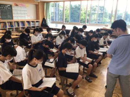 1年生の総合学習です。学級で合唱コンクールの合唱曲選びをしています。