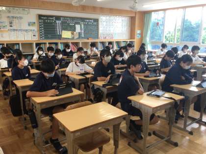 2年生の総合学習です。学級で合唱コンクールの合唱曲選びをしています。