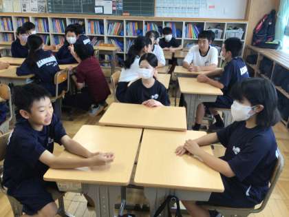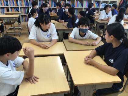 16学級です。グループで話し合い活動をしています。