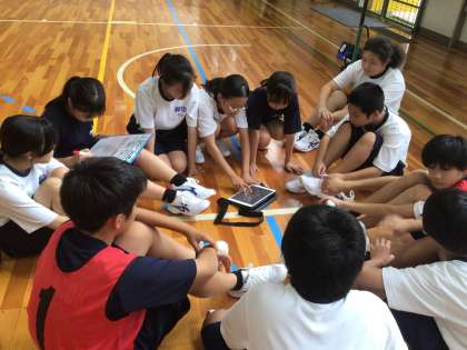 11・12学級の体育です。校内や他校の先生が参観する研究授業を行っています。
